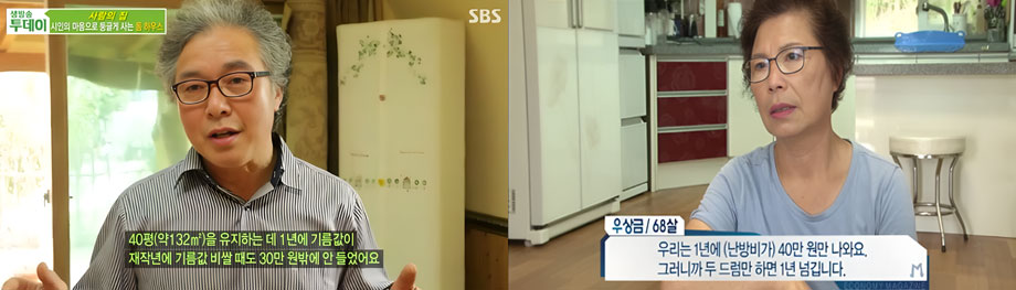 30평 기준 1년 난방비 기름 3드럼에 불과할 정도의 냉난방비용 방송 사례