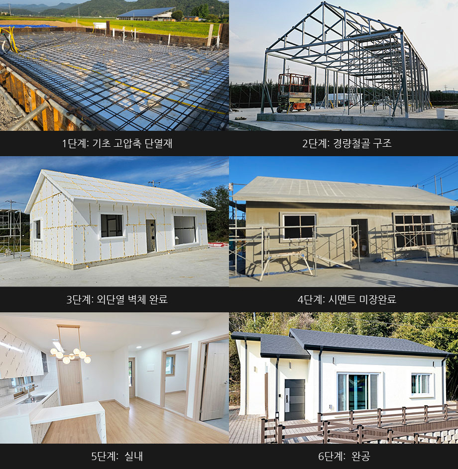 기초콘크리트부터 용접 고정된 철골 각관과 고압축eps벽체를 우레탄폼과 시멘트,시멘트본드,강화섬유를 압착미장하여 기초부터 지붕까지 모든 건물이 완벽히 결합되고 일체화되어 잡아주므로, 지반침하에 강하고 지진에도 보다
